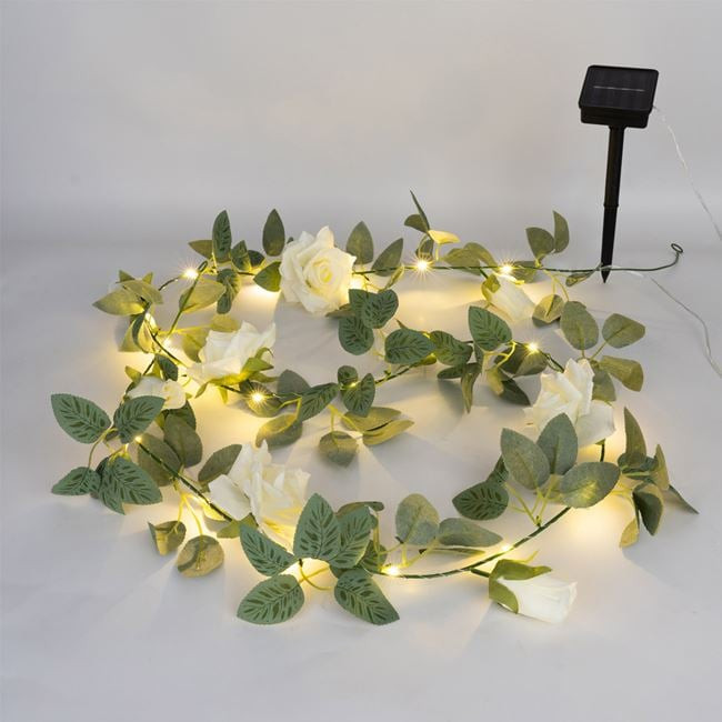 Varázsolja különlegessé kertjét vagy otthonát ezzel az elegáns, szolár üzemeltetésű fényfüzérrel. A dekorációt élethű, textilből készült rózsák díszítik, amelyek nappal is esztétikus látványt nyújtanak, este pedig hangulatos megvilágítást biztosítanak.