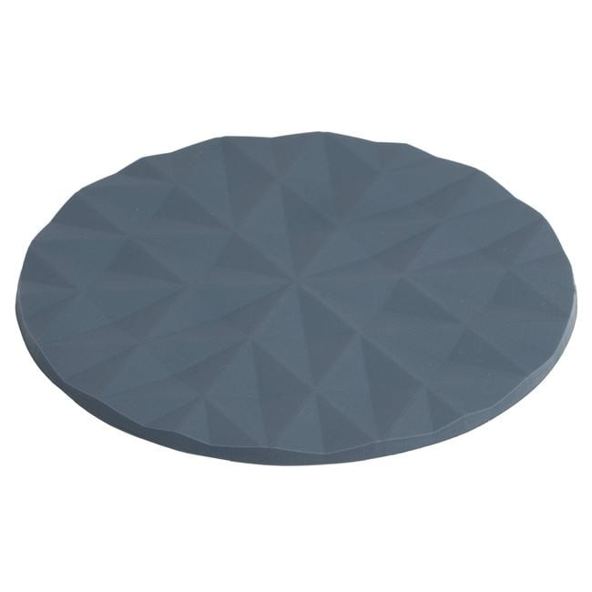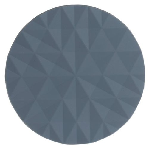 Stílusos és praktikus szürke poháralátét, amely megóvja asztalát a karcolásoktól és a nedvességtől. A kerek alátét tartós PVC anyagból készült, felületét elegáns, dombornyomott rombusz minta díszíti, így modern kiegészítője lehet bármely konyhának vagy étkezőnek.