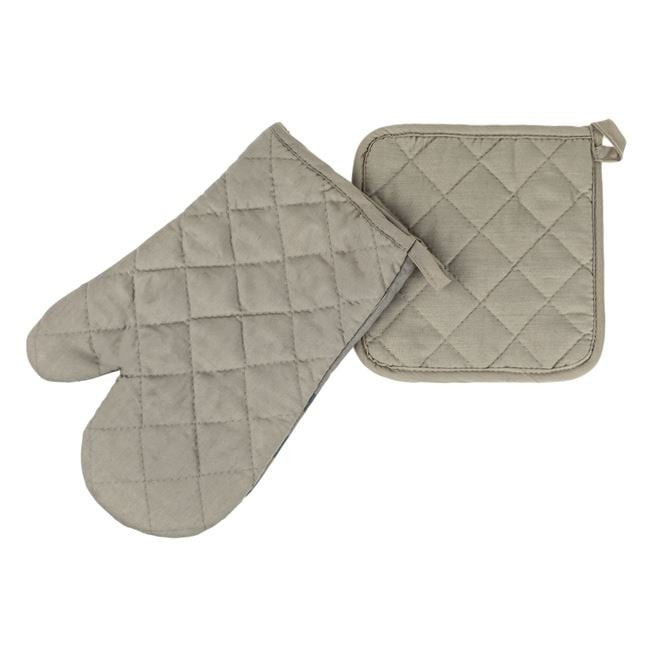 Tegye stílusossá és biztonságossá a sütés-főzést ezzel a praktikus, taupe (vakondszürke/barna) színű konyhai szettel. A csomag egy kényelmes fogást biztosító konyhai kesztyűt és egy hőálló edényfogó kendőt tartalmaz.
