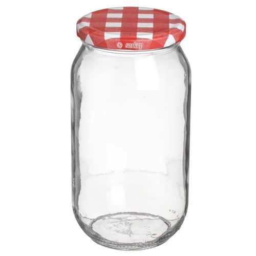 Stílusos és praktikus átlátszó üveg tárolóedény, amely tökéletes választás kamrájába vagy konyhájába. Az üveg klasszikus piros-fehér kockás fém csavaros fedéllel rendelkezik, amely biztosítja a frissességet és esztétikus megjelenést kölcsönöz a tárolt élelmiszereknek.