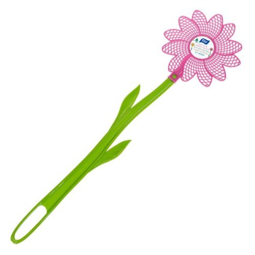 Ezzel a vidám, virág alakú légycsapóval könnyedén és stílusosan tarthatja távol a kellemetlen rovarokat otthonától. A praktikus eszköz élénk fukszia színű fejjel és természetes zöld színű szárral rendelkezik, amely játékos megjelenést kölcsönöz a mindennapi használati tárgynak.